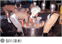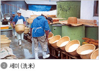 | 약 2~3시간 쌀을 물에 담가두어 증미에 적합한 수분을 흡수시킵니다. |