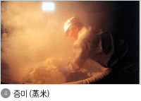 | 물에 담가 두었던 쌀을 고들고들하게 고두밥으로 찌는 과정입니다. |